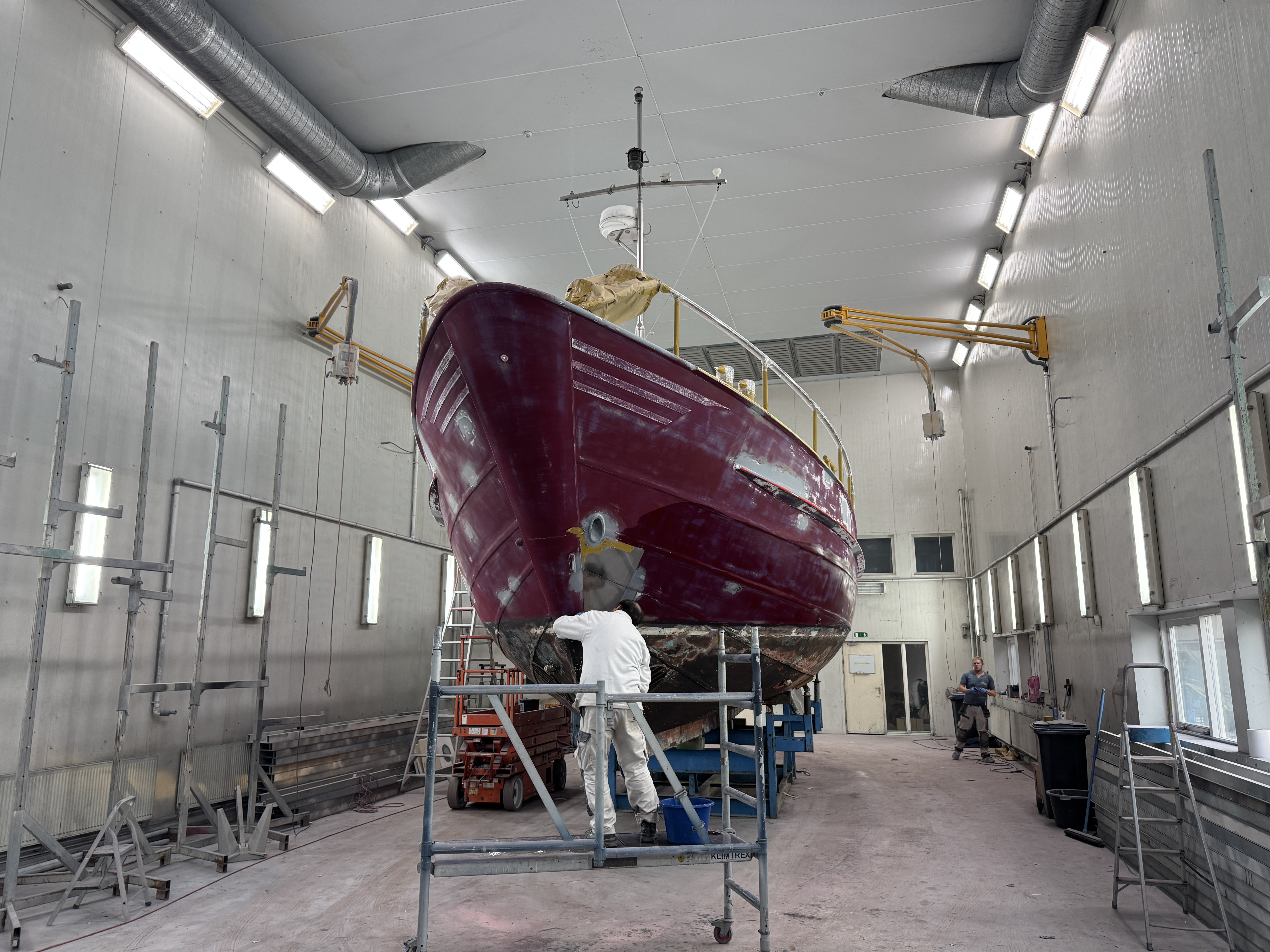 Newpoint Yachting heeft recent een klassieke stalen Bronsveen Kotter volledig onder handen genomen. De romp, het dek, de opbouw én het complete onderwaterschip zijn opnieuw opgebouwd en professioneel gespoten in een hoogwaardig zijdeglans laksysteem. Voor de afwerking is gekozen voor een stijlvolle kleurencombinatie van Shark Grey, Stark Light en Vived Red, waarmee het tijdloze karakter van deze motorboot prachtig tot zijn recht komt.