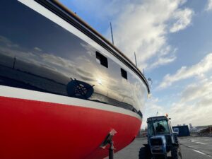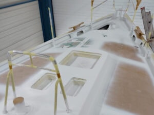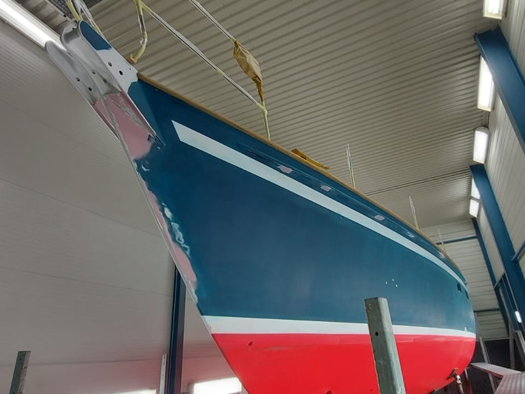 Newpoint Yachting heeft bij bij een Koopmans 43 de romp, het dek en de opbouw opnieuw gespoten in het 2K systeem van AWL-Grip in Enkhuizen. De romp is gespoten met AWL-Grip Flag Blue. De opbouw hebben we gespoten in AWL-Grip Oyster White.